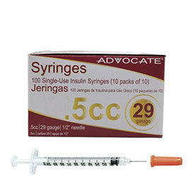 • 100 Advocate Insulin Syringes 29G - 1/2cc Syringes (1/2")