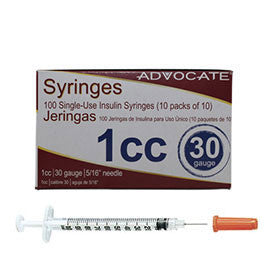 - 100 Advocate Insulin Syringes 30G - 1cc Syringes (5/16")