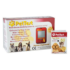 PetTest Blood Glucose Meter is a simple device for testing the blood glucose of your pets. The PetTest Glucose Meter was designed specifically for dogs and cats, assuring the most accurate readings.