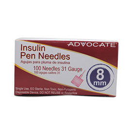 - 100 Advocate Insulin Syringes 31G x 8mm (5/16") Short Pen Needle