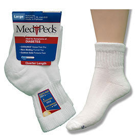 - 2 Pairs per package - Medipeds Diabetic Quarter Sock - Large - White
