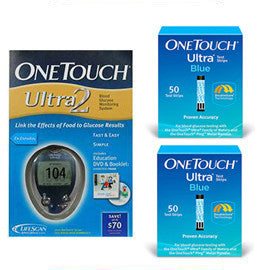 One Touch Ultra 2 Glucose Meter Kit Combo (Meter Kit and Test Strips 100ct)